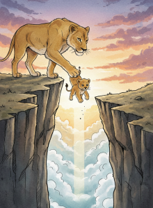 『獅子は我が子を千尋の谷に落とす』という言葉があります。ライオンが我が子を深い谷底へ突き落とし、自力で這い上がってきた子だけを育てるという意味です。